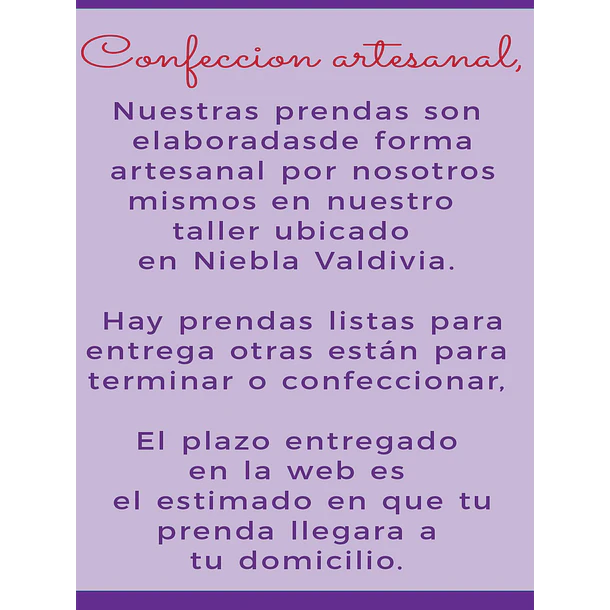 Si tienes dudas con tu talla, por favor escríbenos nuestro whatsapp +56995728135